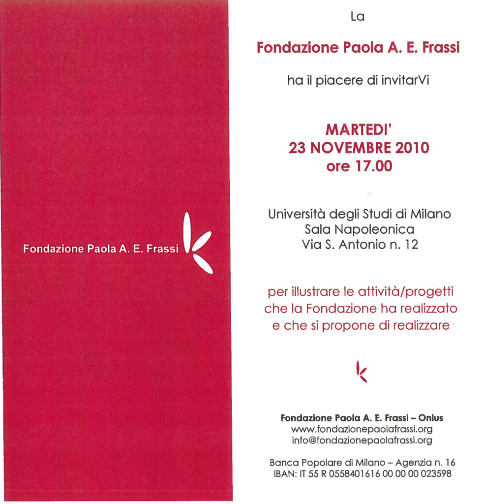 La Fondazione Paola A. E. Frassi ha deciso di indire la prima riunione, per raccontare ai suoi sostenitori i progetti che intende portare avanti.
